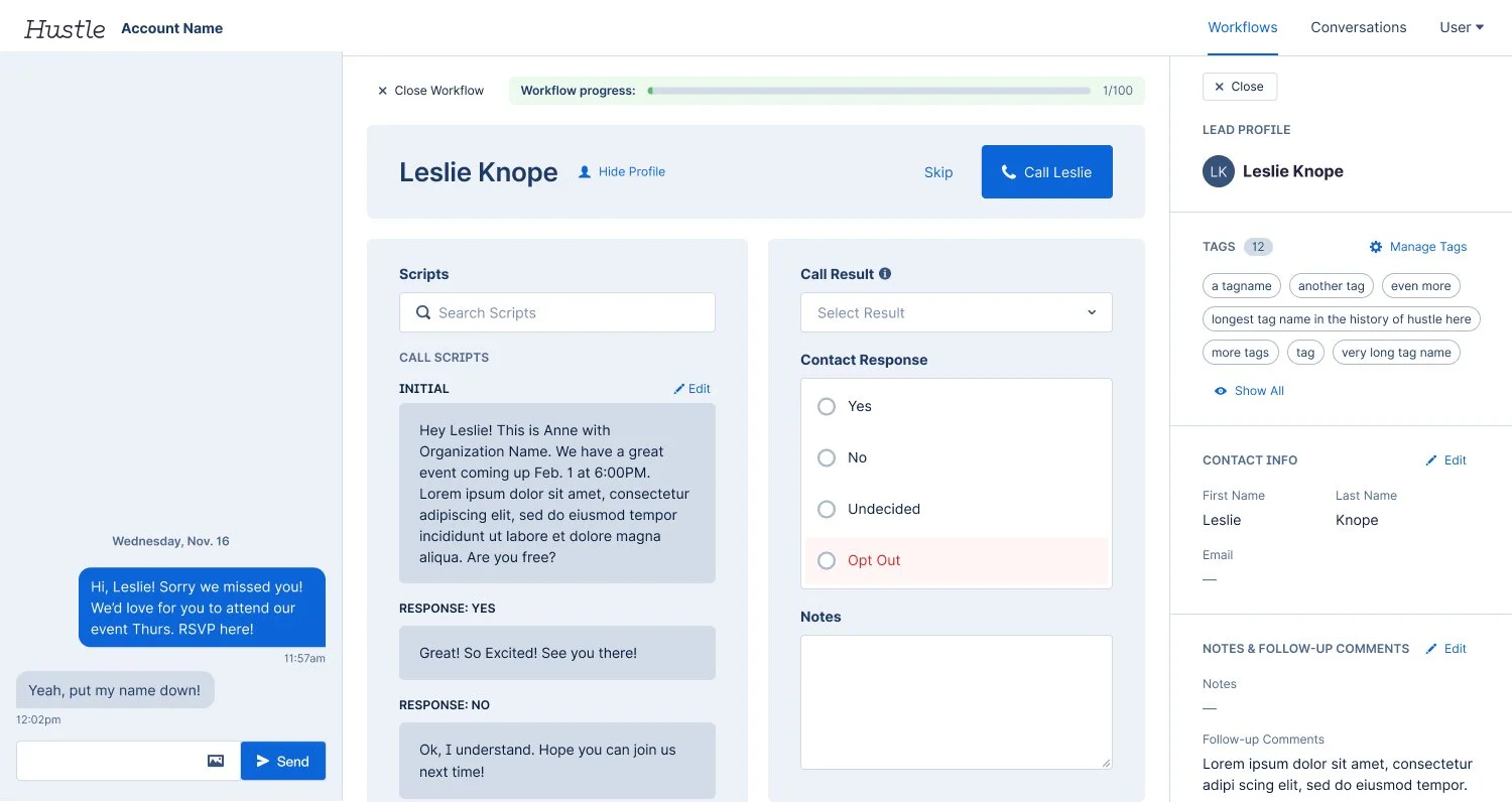 To meet the growing needs of the market, Hustle expanded the platform to include a calling product—Hustle Dialer.